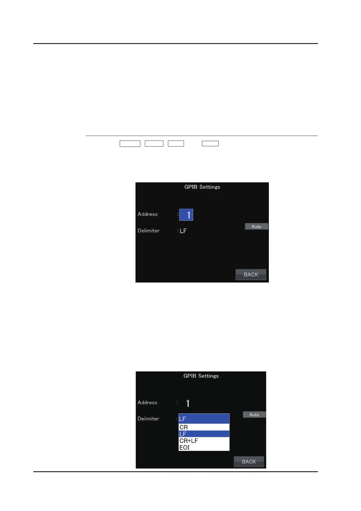 1. Touch MENU , NEXT , COM , and GPIB . The GPIB settings screen will be