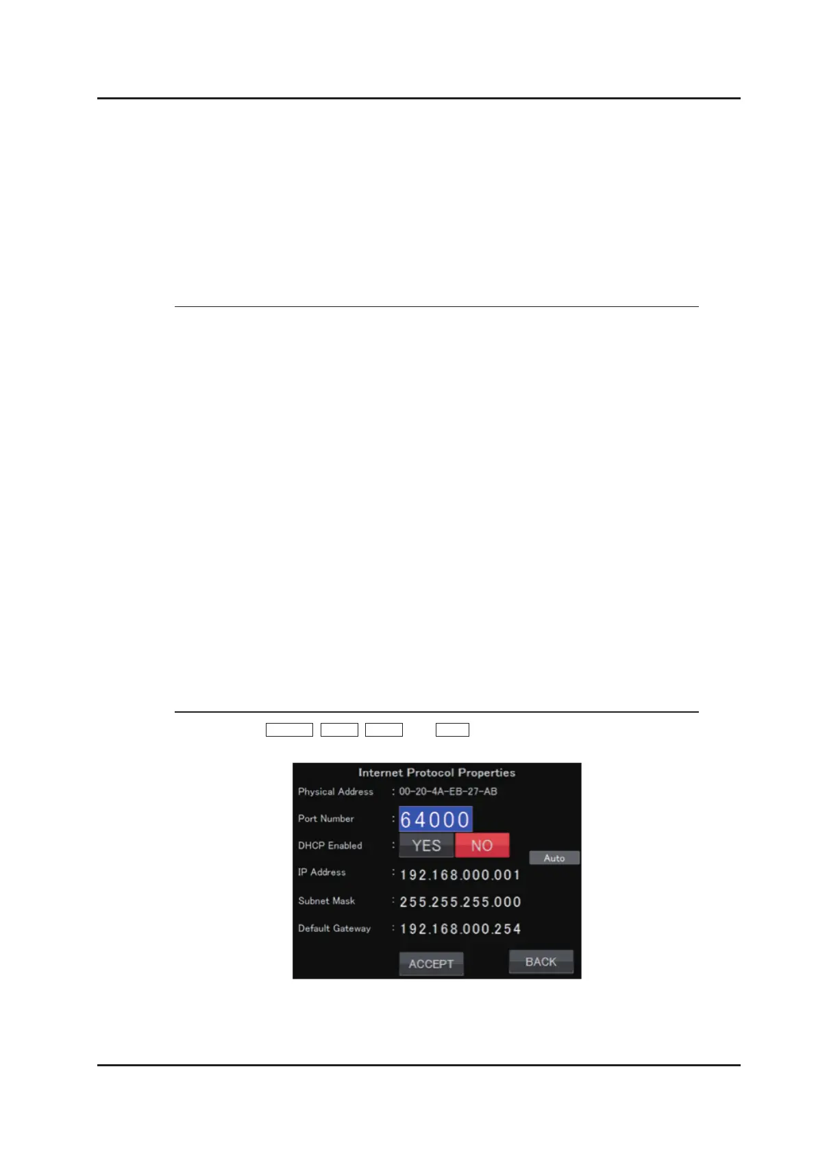 1. Touch MENU , NEXT , COM , and LAN . Ethernet setting screen is displayed.