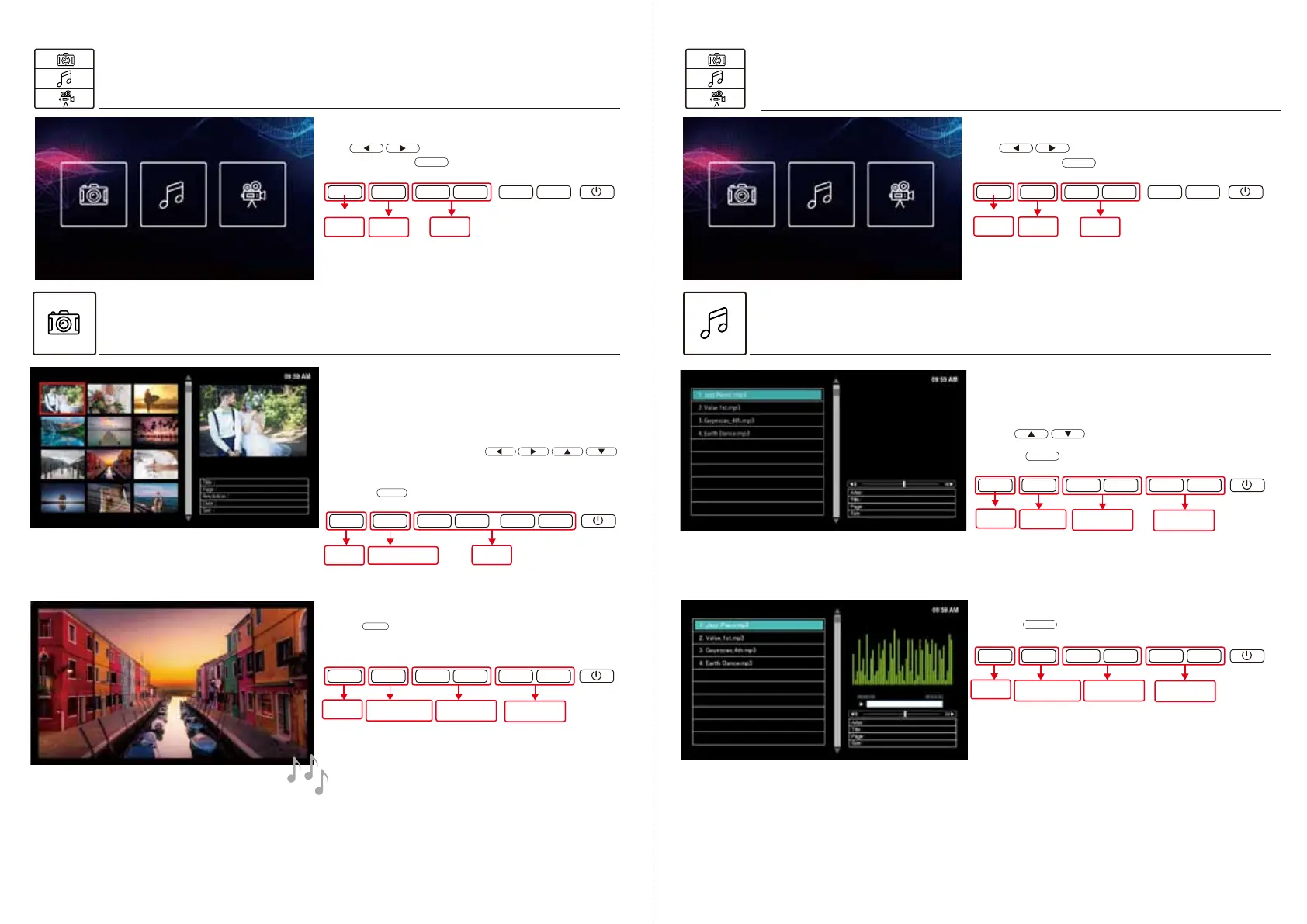 Afterentering[Photo]/[Music]/[Video]menu,