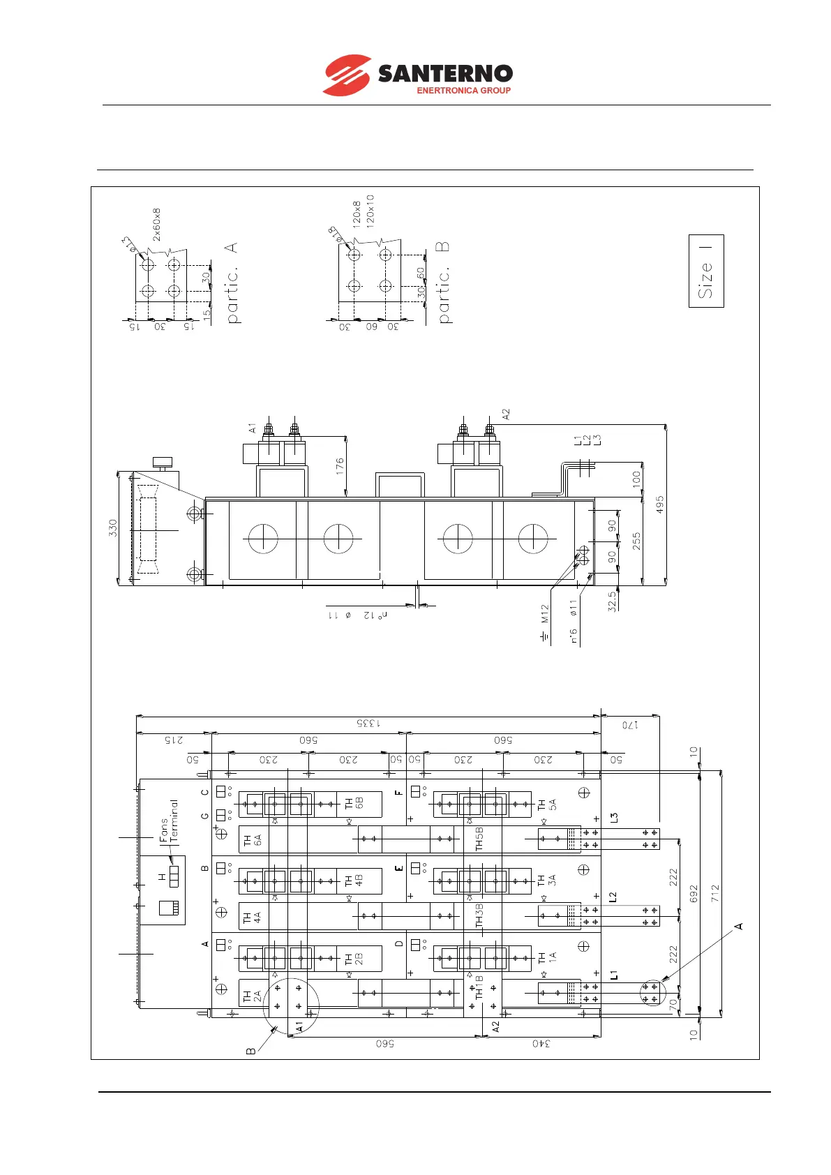 Santerno DCREG4.150 - Dcreg Modular.s Size I Power Section Overall Dimensions
