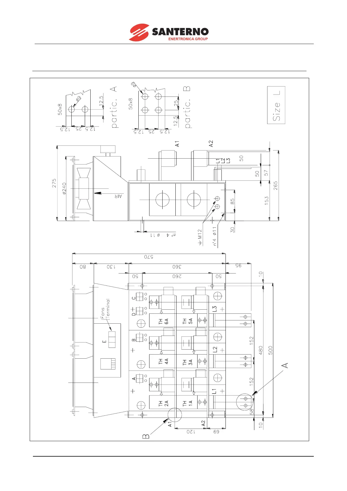 Santerno DCREG4.150 - Dcreg Modular.s Size L Power Section Overall Dimensions