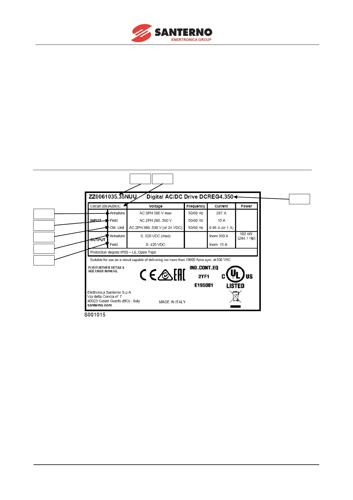 4. The armature section can be supplied with a 500 Vac (max.) three-phase alternate voltage and