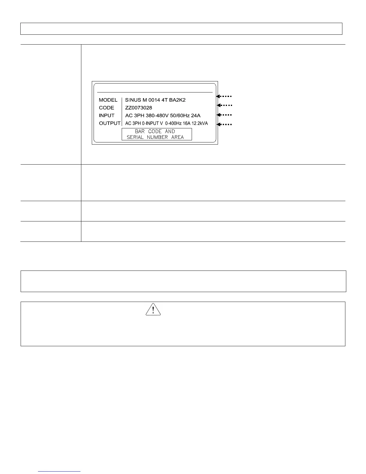 type and output ratings on the nameplate. Also make sure that the inverter is intact