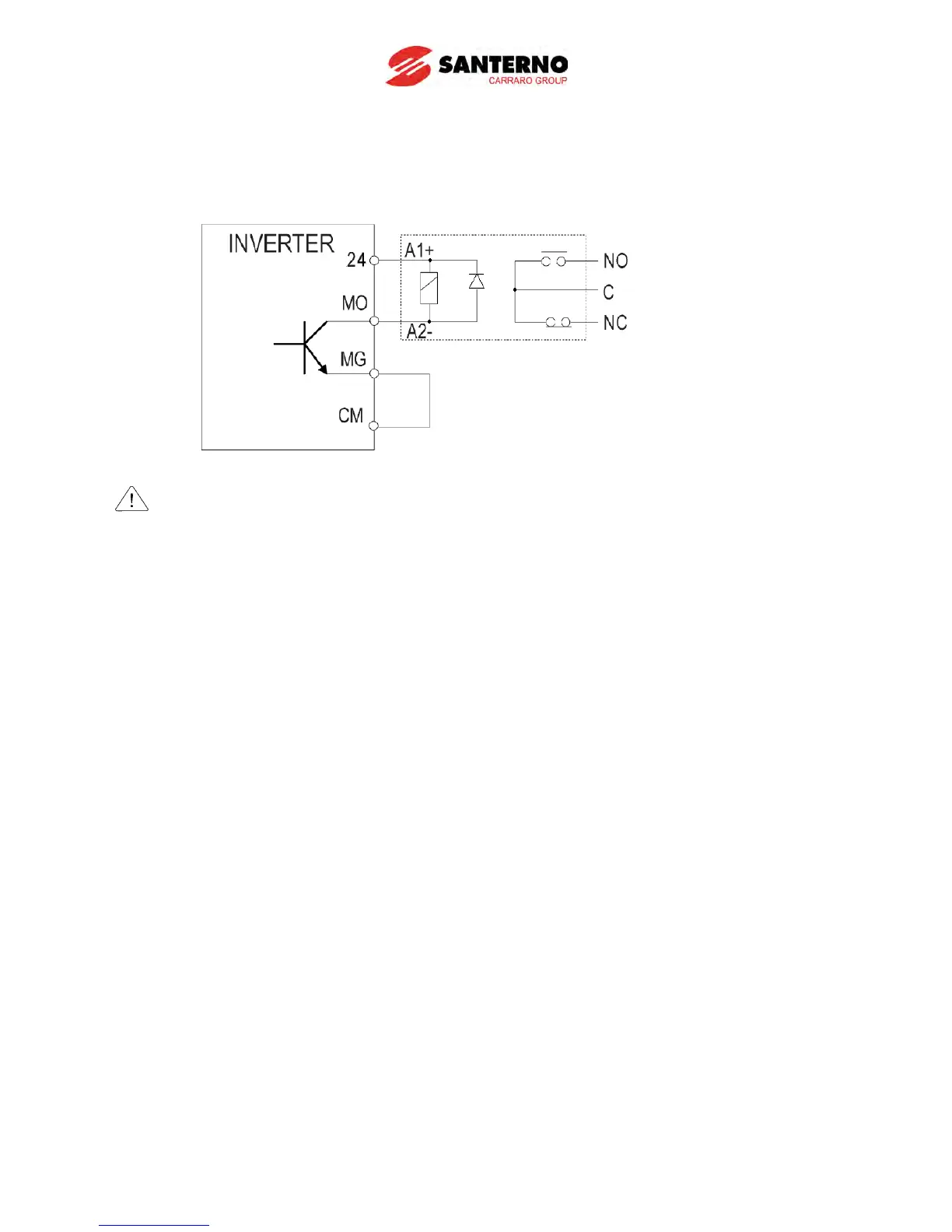 An optional external relay with a +24Vdc coil may be connected to the Open Collector output as