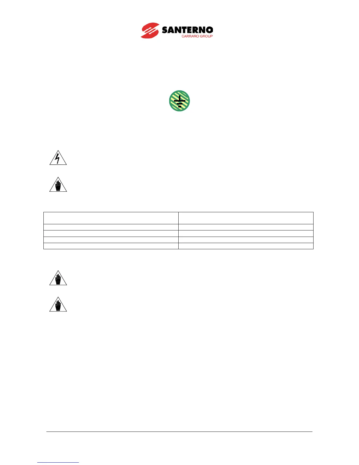 The values in the table above are valid only if the protective earthing conductor is made of the