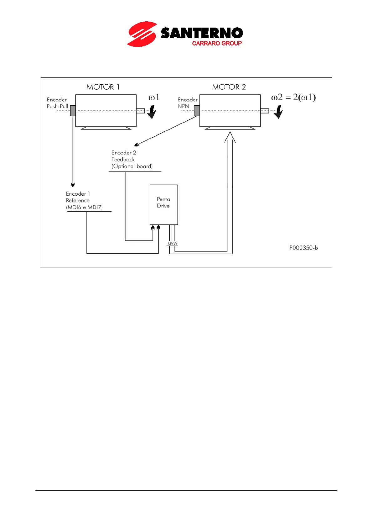 To do so, use speed of motor 1, provided with an encoder, as the reference for the Penta Drive, and use the speed
