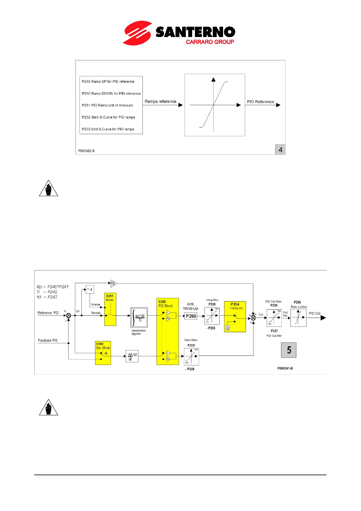 The PID2 ramp reference control is the same, but parameters P2xx