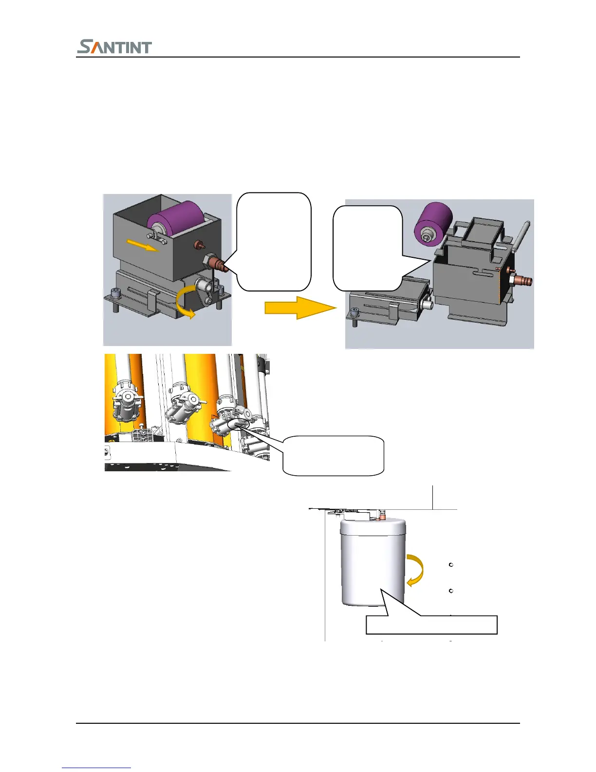 1) Remove the connection pipe, lift the locking handle as figure to loosen the cleaning box.