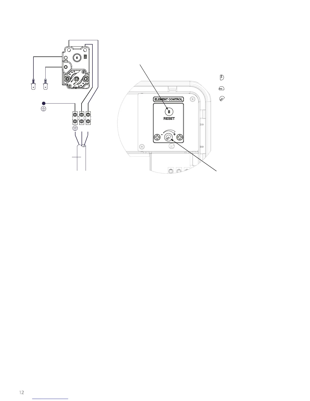 immersion heater boss(es). The supply cable must be routed through the cable gland located on the unit casing beneath