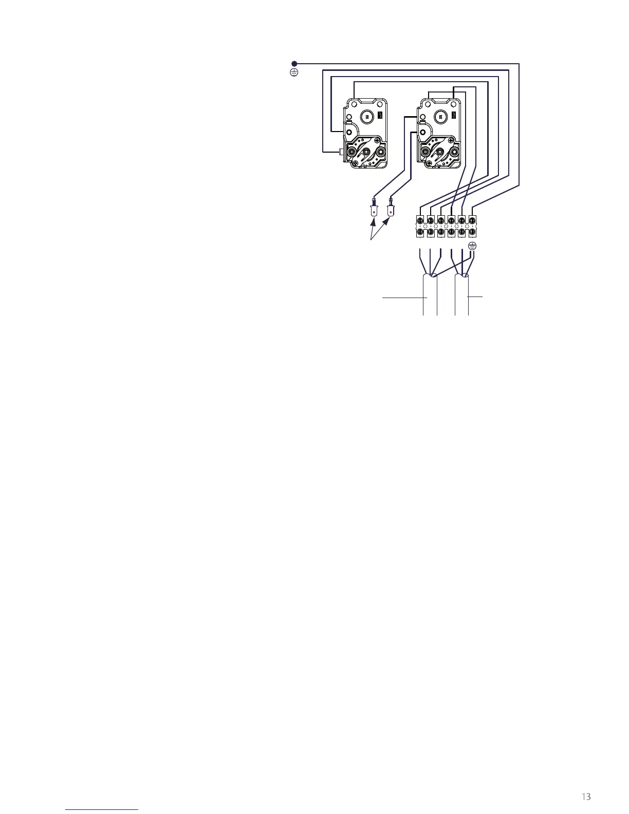 under the terminal cover mounted on the side of the unit. The supply cable(s) must be routed through the cable grip(s)