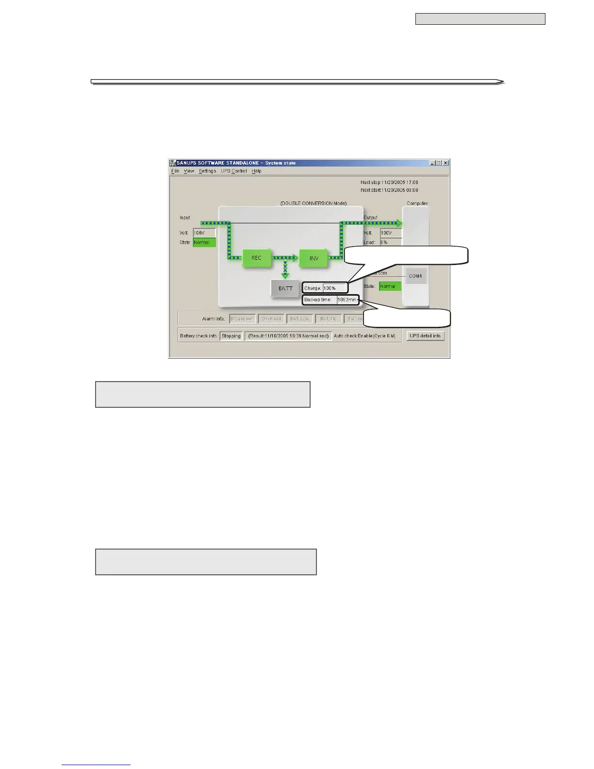 See §6.1 “Main Screen” in the User Guide of SANUPS SOFTWARE STANDALONE for details.