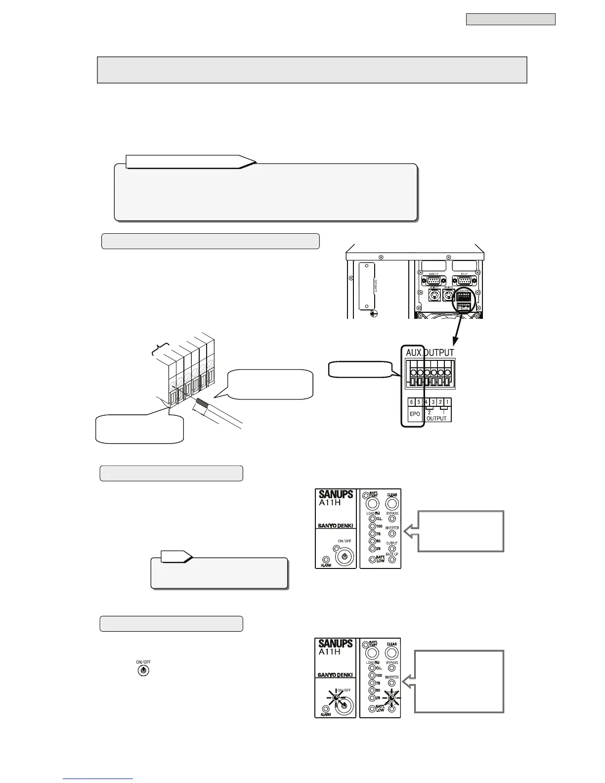 For details about the functions of the EPO terminals, see “④ AUX.OUTPUT” in §5.3 “External Interfaces”.
