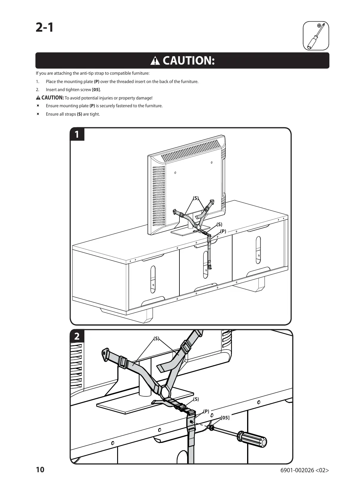 If you are attaching the anti-tip strap to compatible furniture: