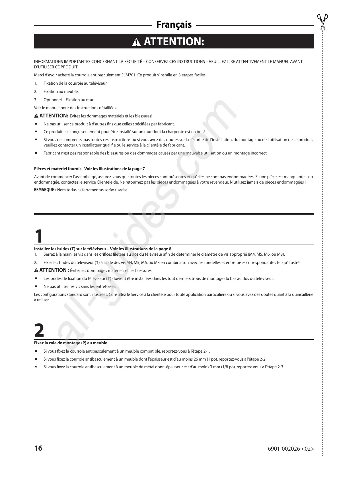 Merci d’avoir acheté la courroie antibasculement ELM701. Ce produit s’installe en 3 étapes faciles !