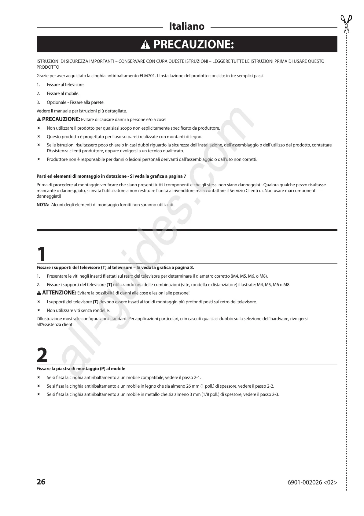 Grazie per aver acquistato la cinghia antiribaltamento ELM701. L’installazione del prodotto consiste in tre semplici passi.