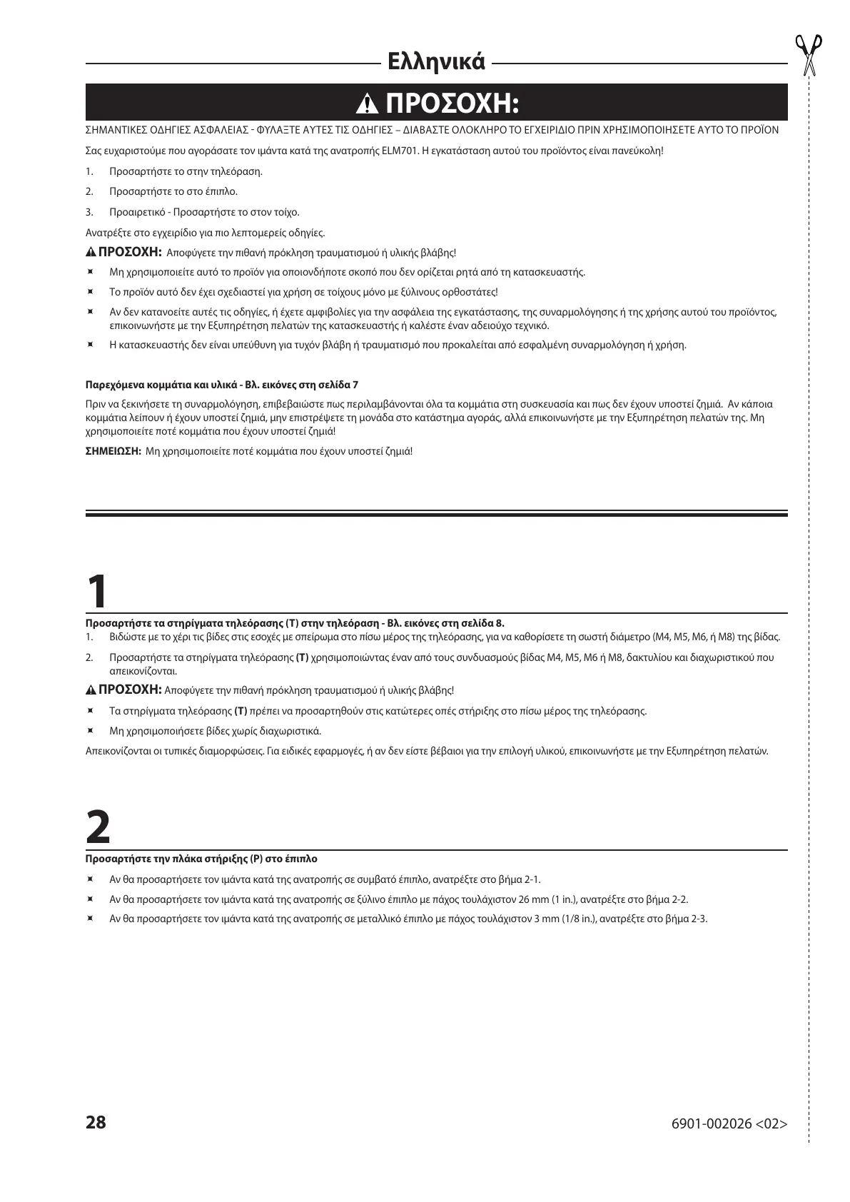 Ù Το προϊόν αυτό δεν έχει σχεδιαστεί για χρήση σε τοίχου όνο ε ξύλινου ορθοστάτε!