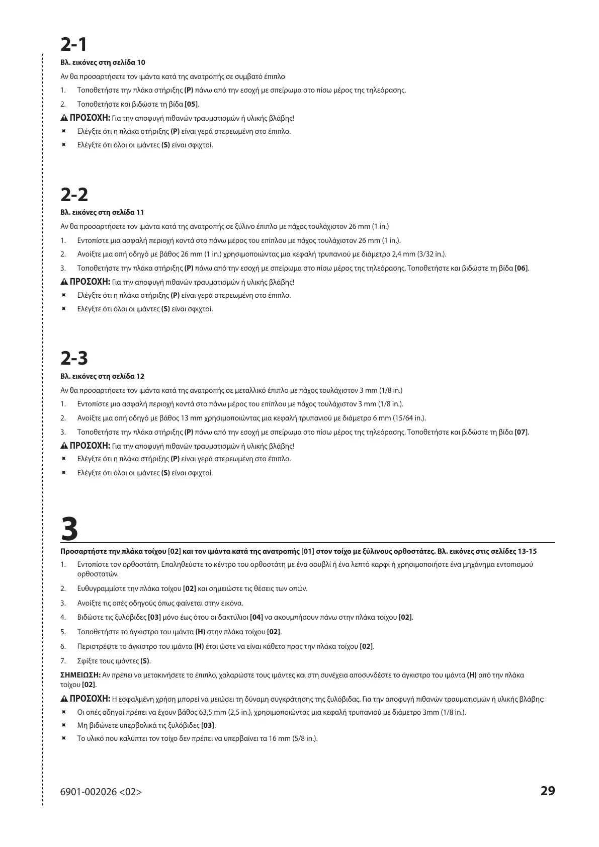 Αν θα προσαρτήσετε τον ιάντα κατά τη ανατροπή σε ξύλινο έπιπλο ε πάχο τουλάχιστον 26 mm (1 in.)