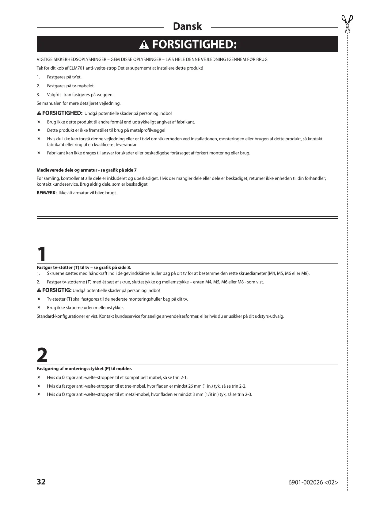 Tak for dit køb af ELM701 anti-vælte-strop Det er supernemt at installere dette produkt!