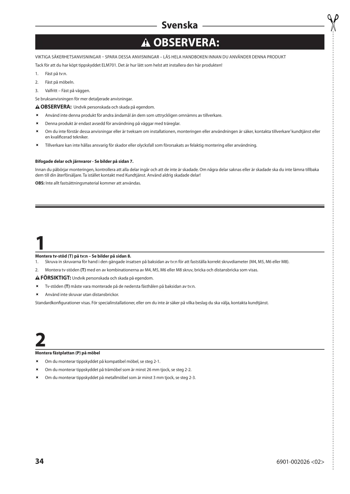 Tack för att du har köpt tippskyddet ELM701. Det är hur lätt som helst att installera den här produkten!