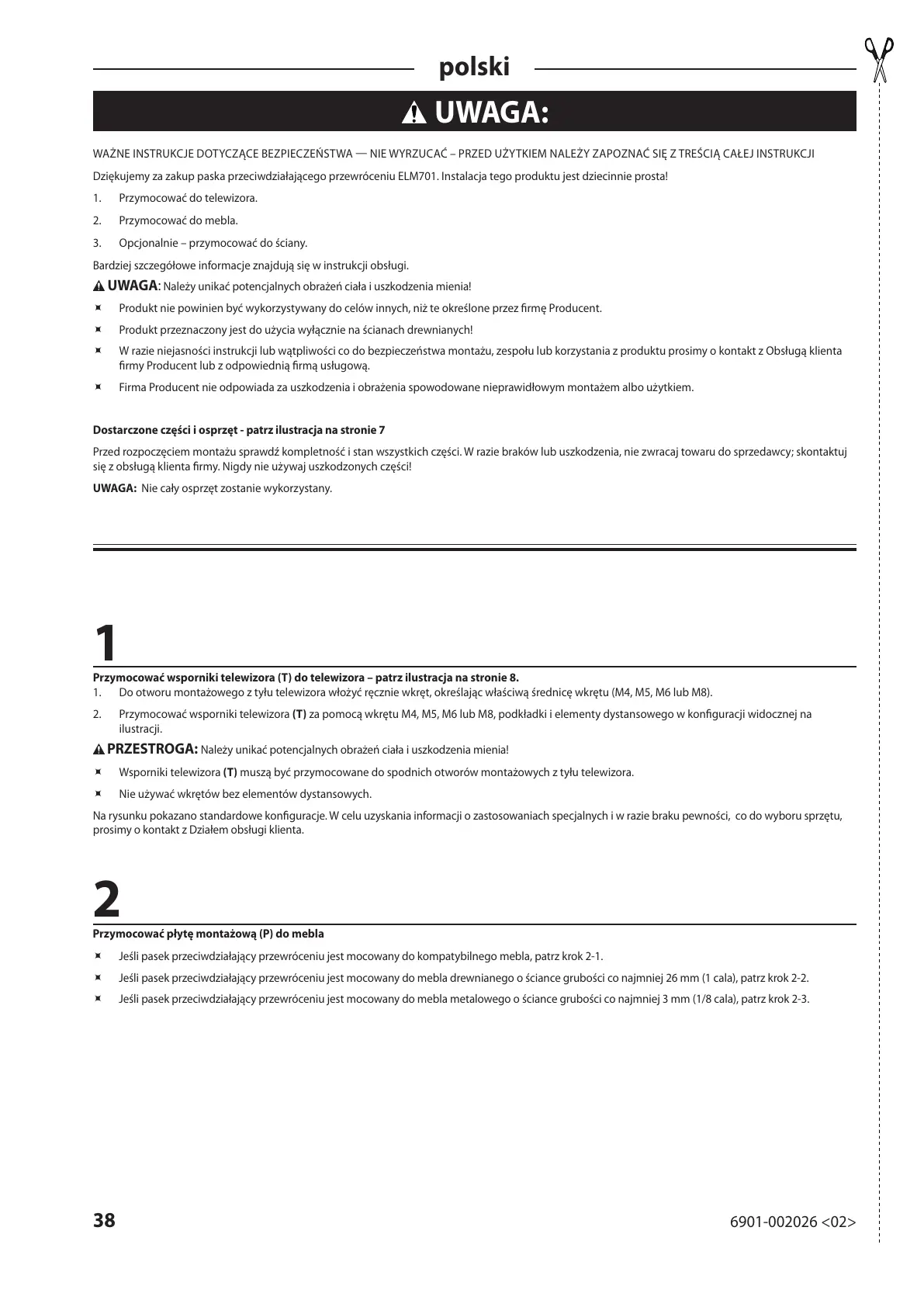 Dziękujemy za zakup paska przeciwdziałającego przewróceniu ELM701. Instalacja tego produktu jest dziecinnie prosta!