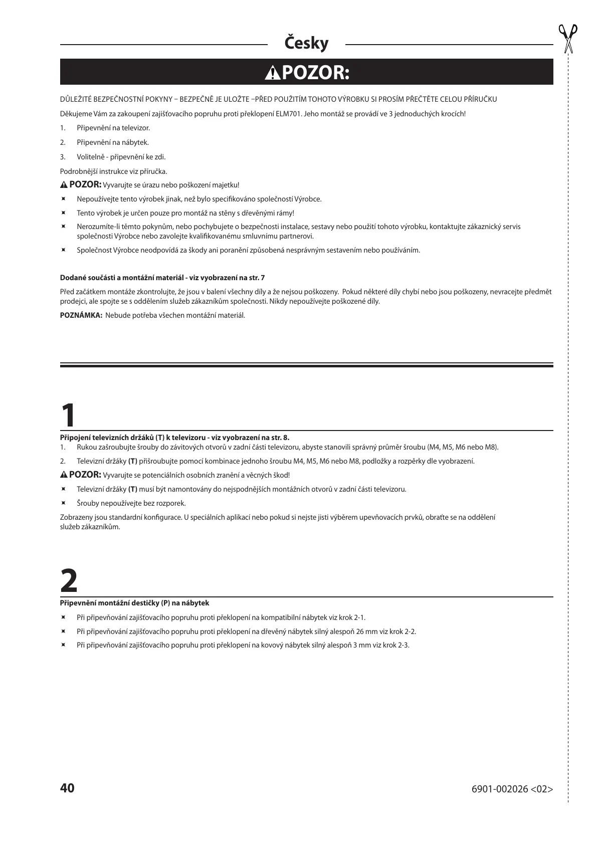 Ù Nerozumíte-li těmto pokynům, nebo pochybujete o bezpečnosti instalace, sestavy nebo použití tohoto výrobku, kontaktujte zákaznický servis