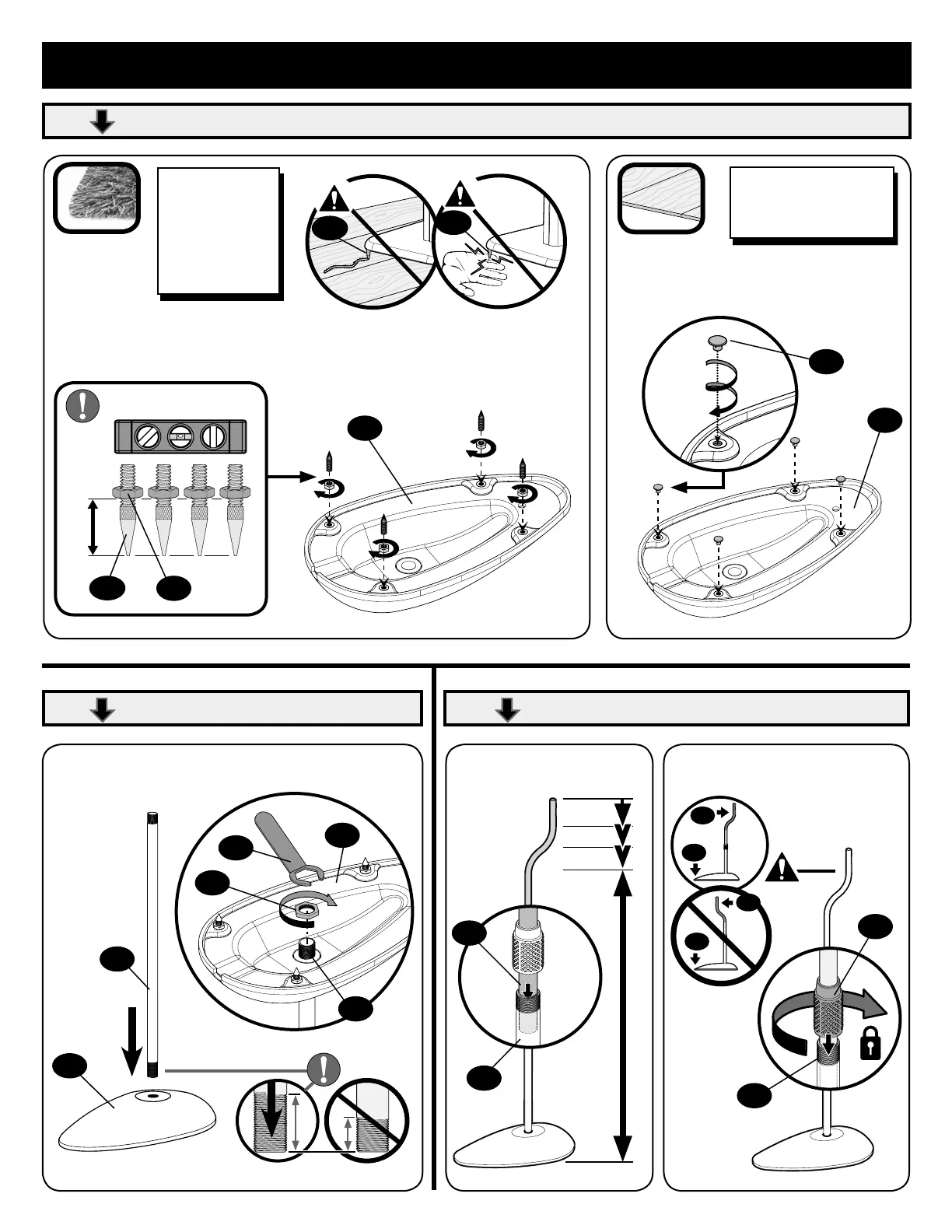 Sanus Foundations HTB3 - Assembly; Carpet Spikes and Rubber Feet; Base Assembly; Pole Connection