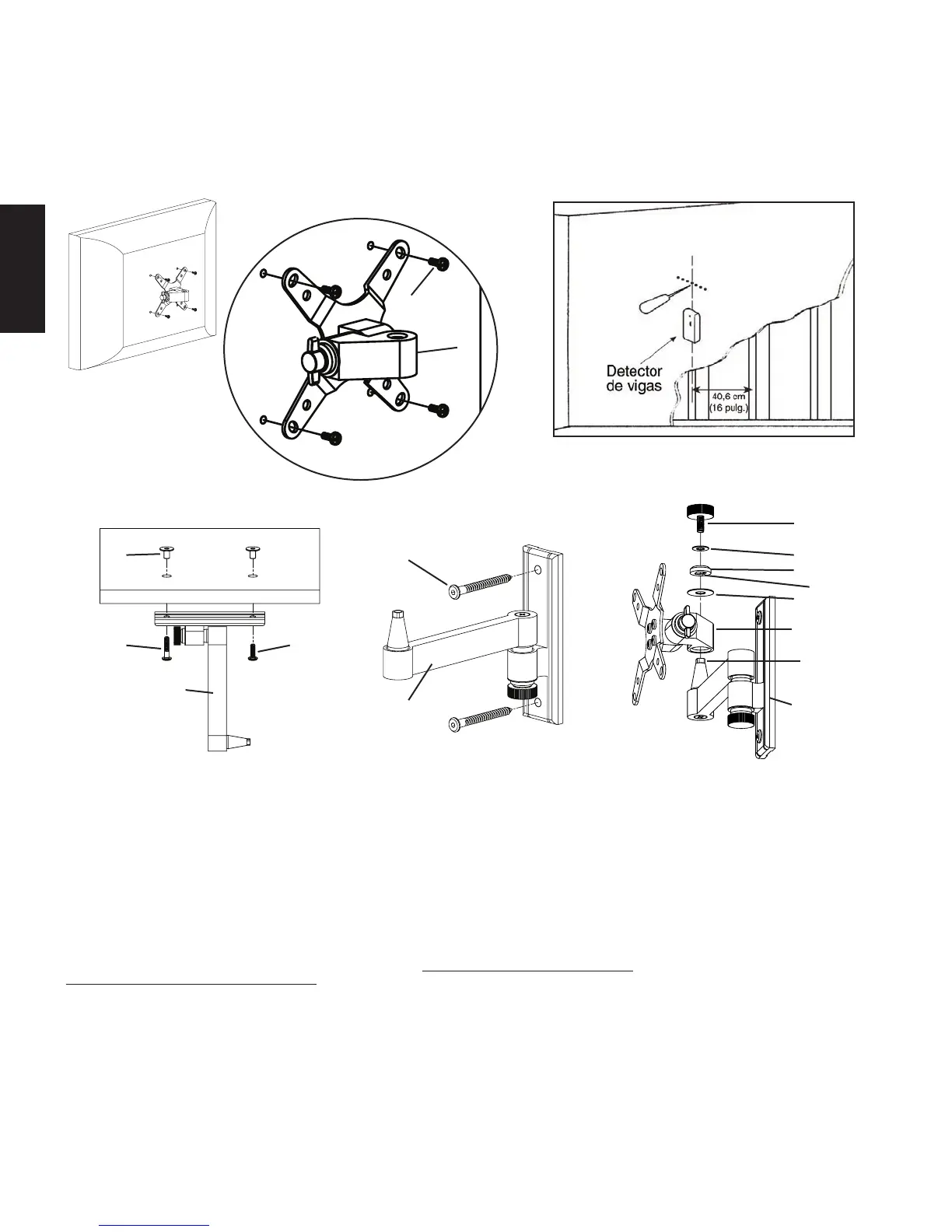 demás aplicaciones de montaje, ponerse en contacto con un contratista o una ferretería local. Utilizar un detector de vigas