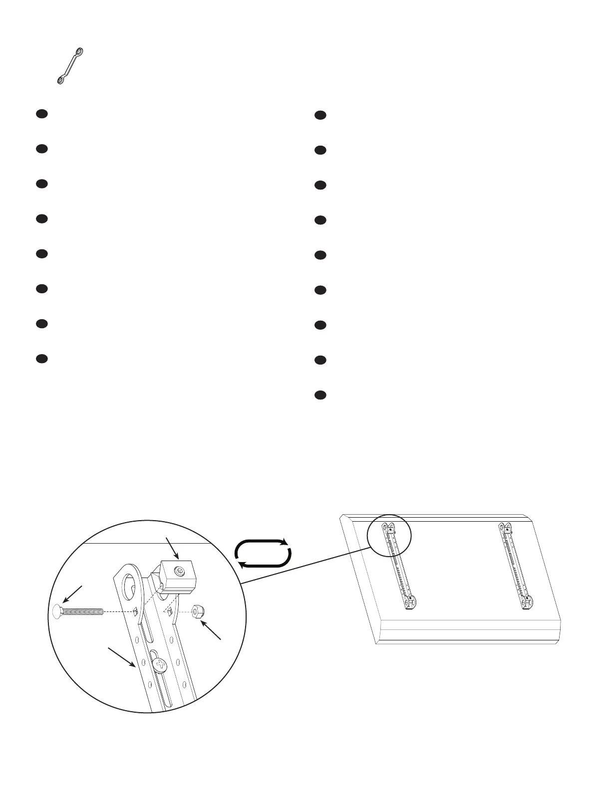 OBS: Dra inte åt muttern [10] för hårt. Skruvfästet [06] ska rotera fritt runt