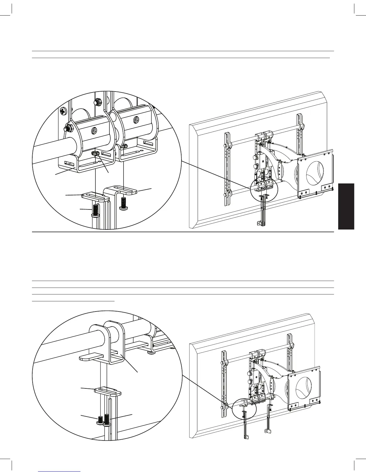 entées en directions opposées. Si les inserts filetés sont espacés de 3,8 cm à 9,5 cm, les pattes des supports de haut-parleur doivent être posées