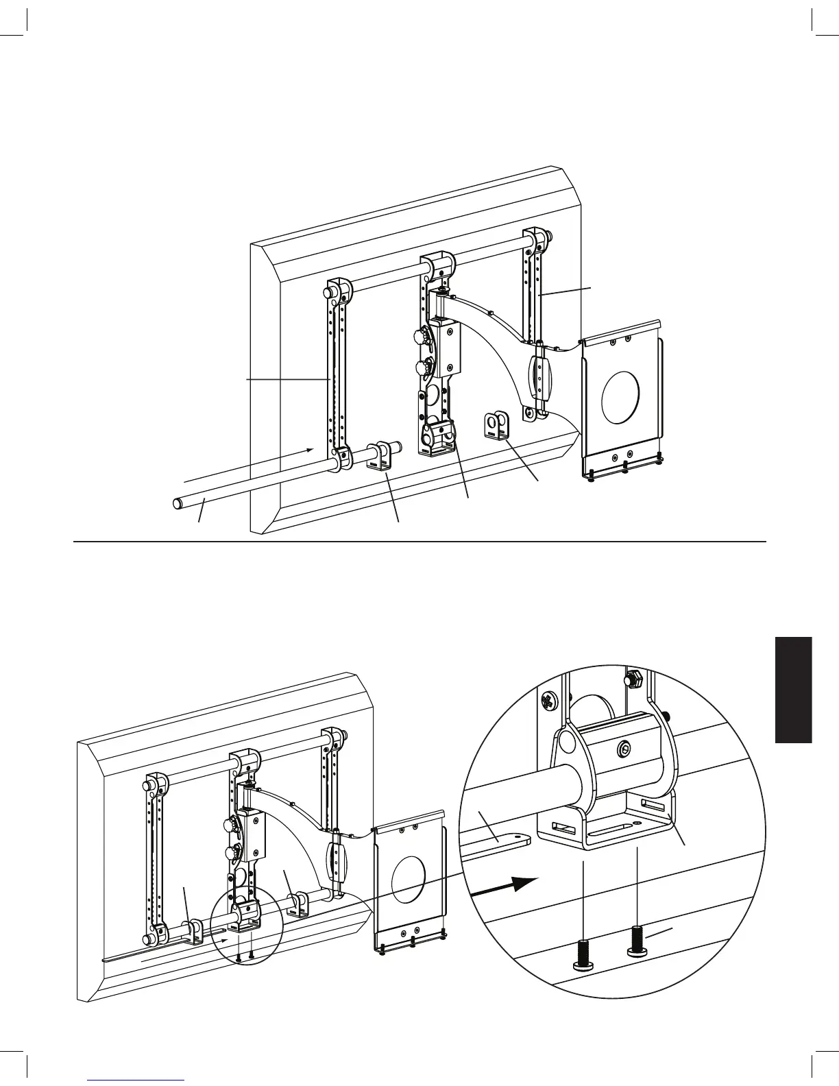 вторую крепежную скобу для монитора. Затяните все три зажимные устройства, когда поперечная трубка пройдет