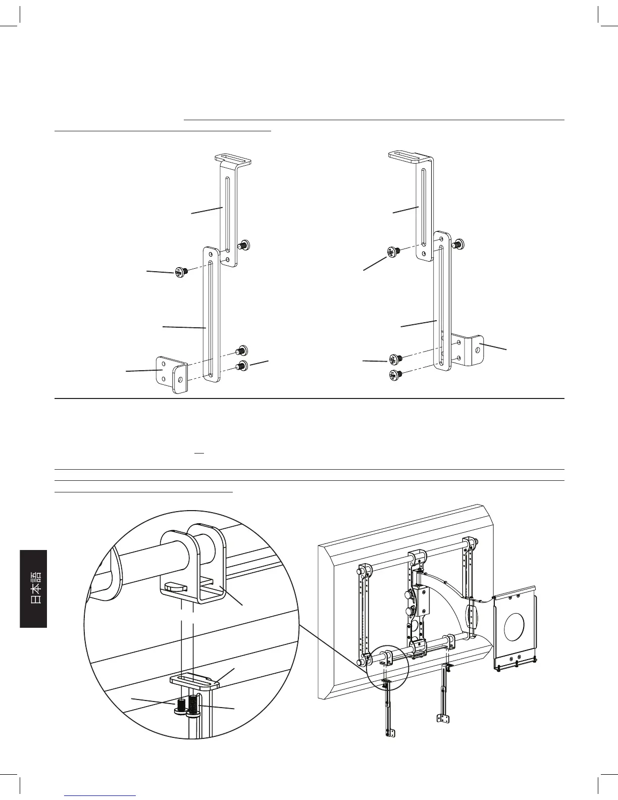 の奥行は、スピーカー取付金具 (f) の前後にある穴を使用して調整できます。上部拡張部品は上部にあるスロットを使用して、ス