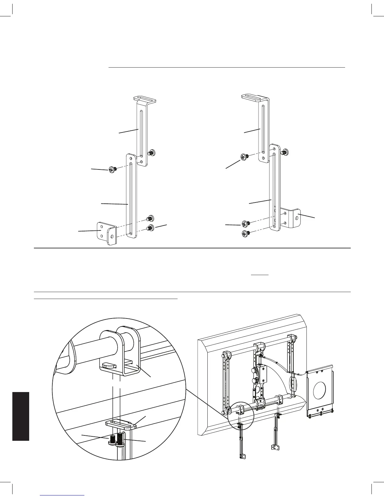 如下图所示装配音箱附件。用飞利浦螺丝刀旋紧所有螺钉。对第二个音箱附件重复此操作过程。在垂直方向上调整延伸臂装配