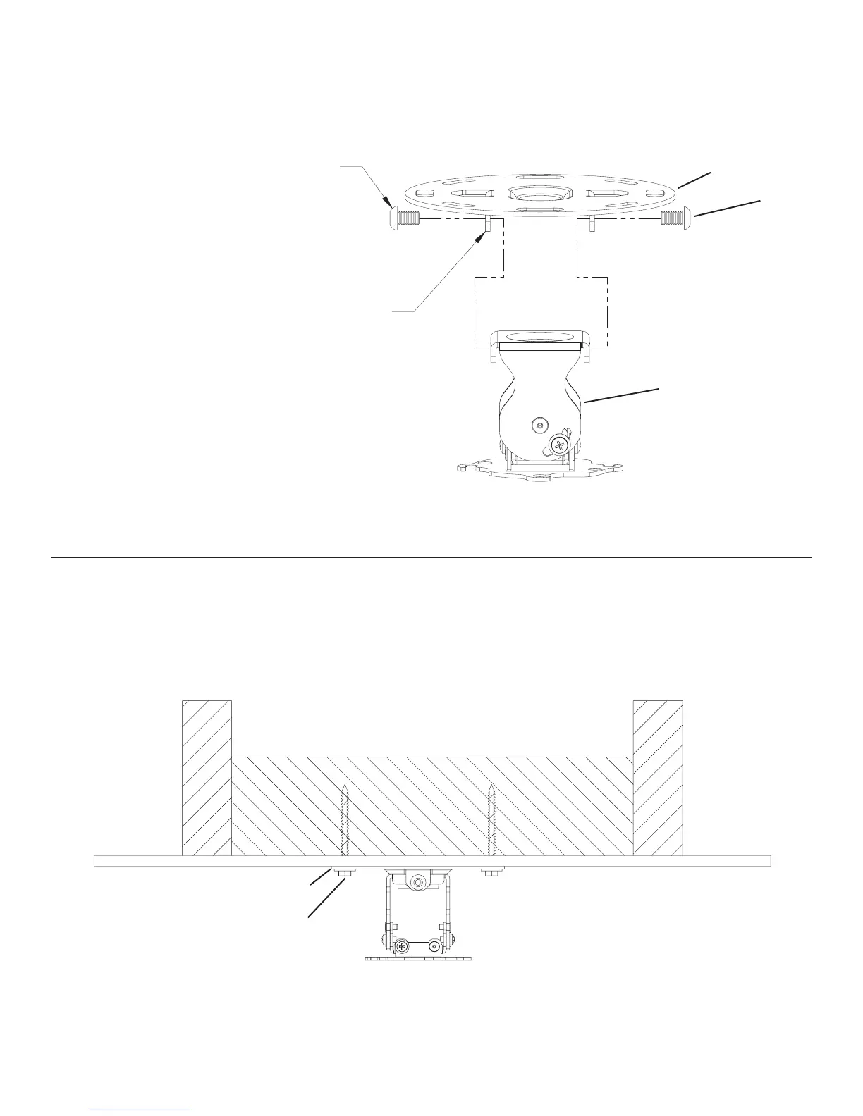 Proceed to mount the top assembly to the ceiling using one of the appropriate hardware combinations mentioned in Step 2. Diagram