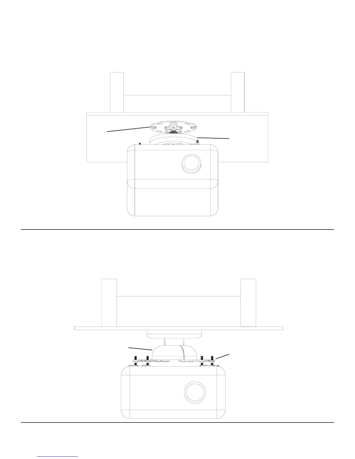First, lower the Top Cover (f) to expose the Lag Bolts (t). Make sure the Lag Bolts in ceiling are slightly loose until projector is aligned.