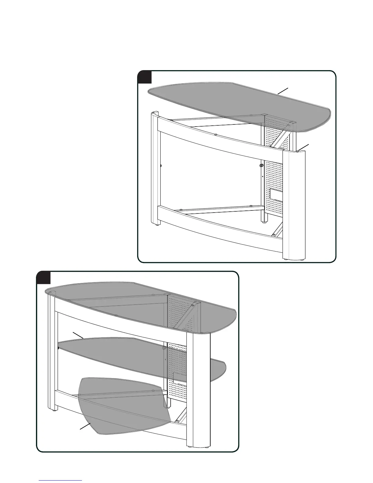 1. Set top glass shelf [06] on top of the glass pads [14].