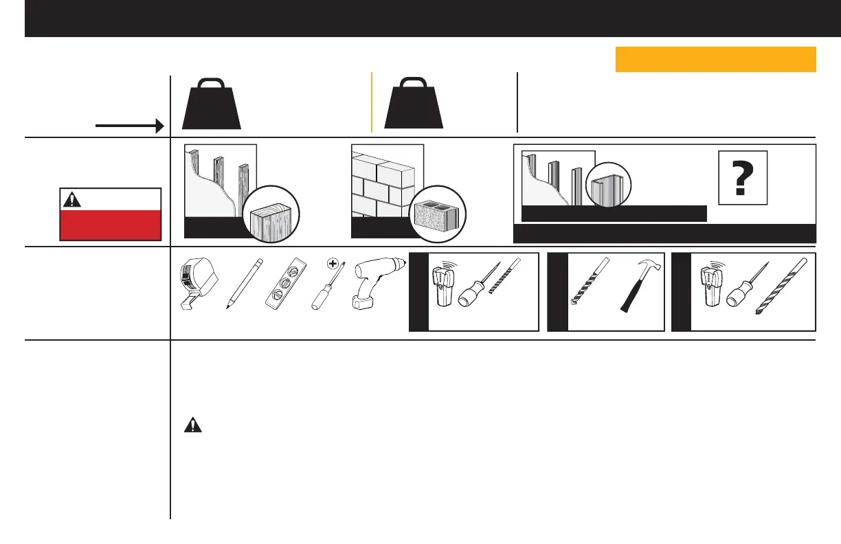 ● The wall must be capable of supporting fi ve times the weight of the TV and mount combined.