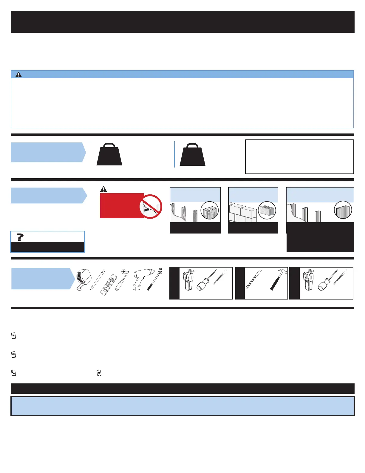 ● Este producto está diseñado para usarse únicamente en aplicaciones con montantes de madera, hormigón y bloques de hormigón. NO lo instale en tabiques únicamente de