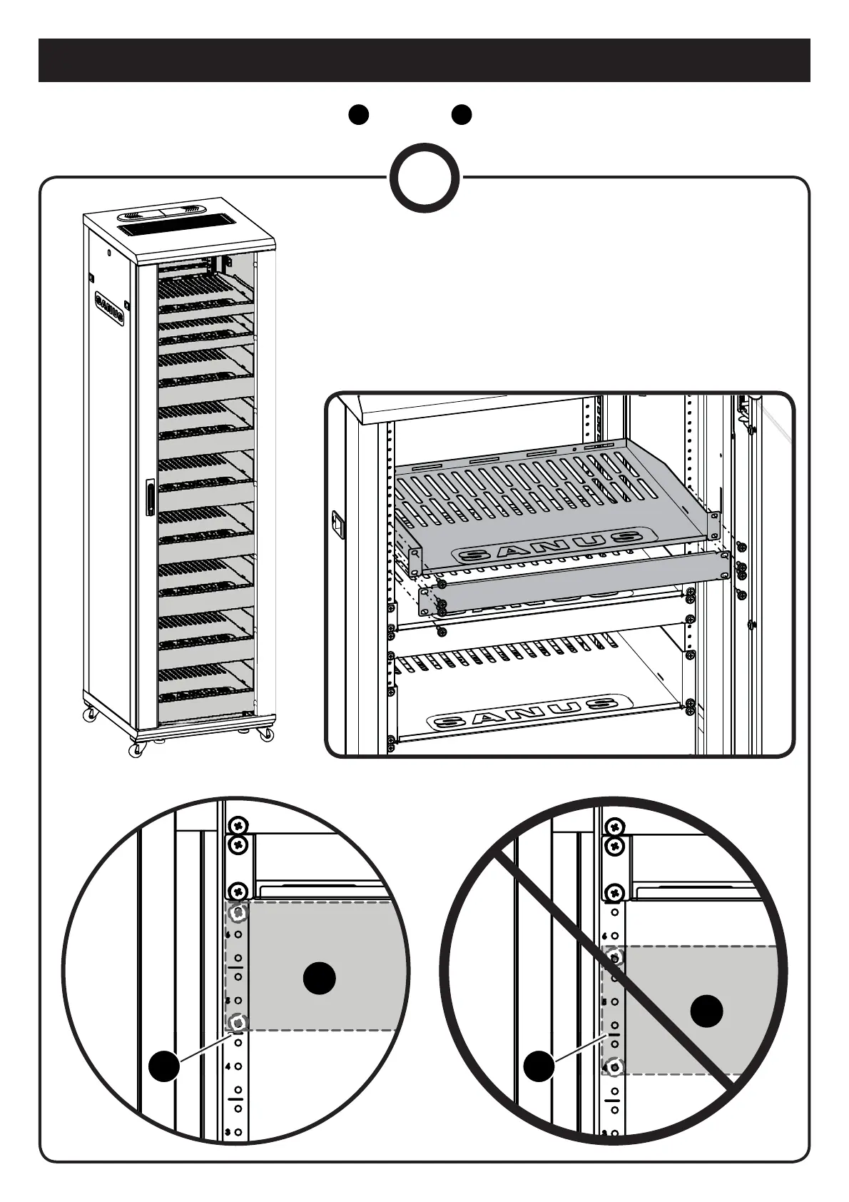 NOTE: Align the bottom of the shelf or blanking panel
