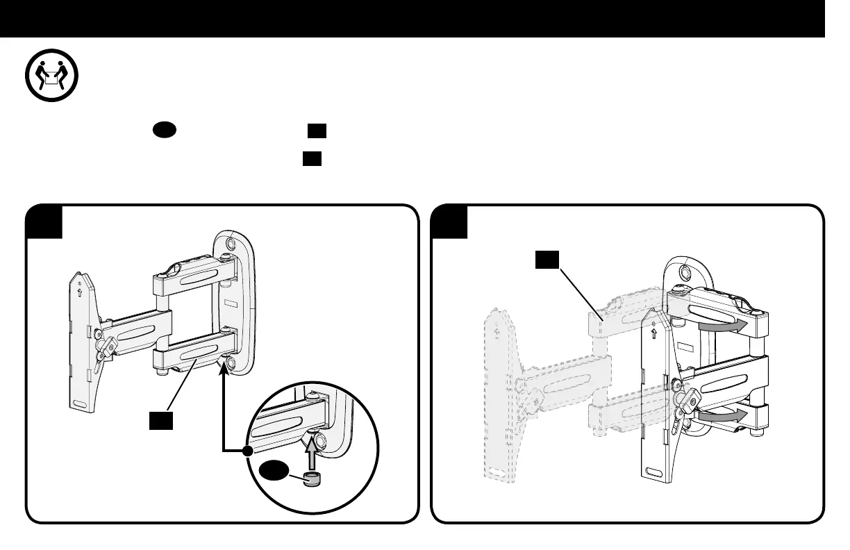 Sanus F215 - Step 3: Hang TV onto Wall Plate; Install Wall Plate Nut Cap; Secure Arm for Stability