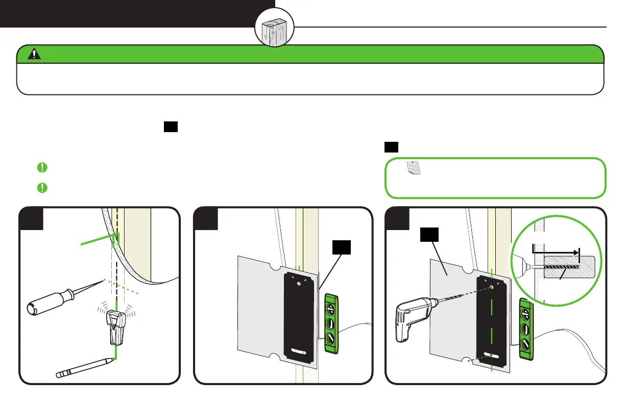 ● Drywall covering the wall must not exceed 5/8 in. (16 mm)