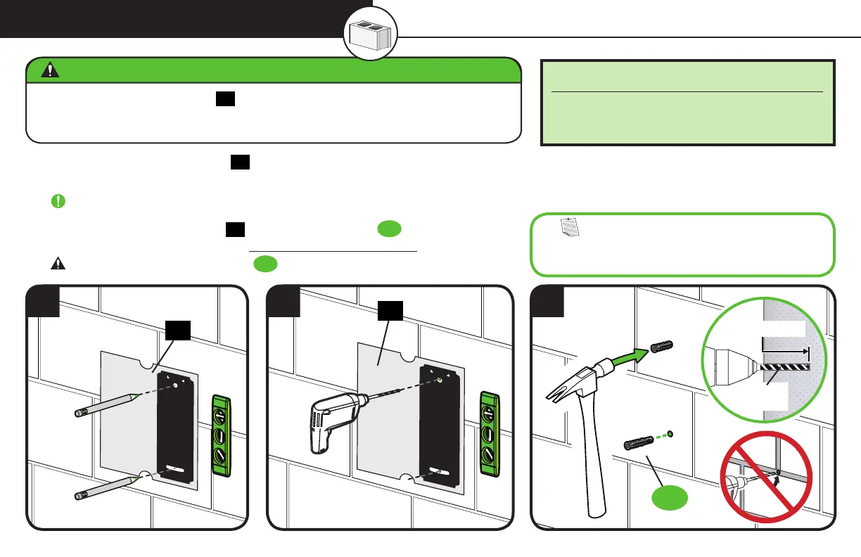 IMPORTANT: Pilot holes must be drilled to a depth of 3 in. (75 mm). Never drill into the mortar between blocks.