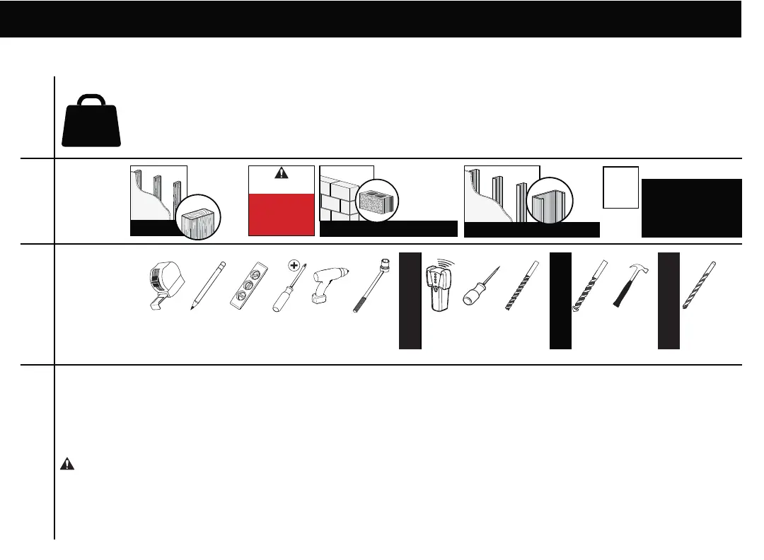 ● The wall must be capable of supporting fi ve times the weight of the TV and mount combined