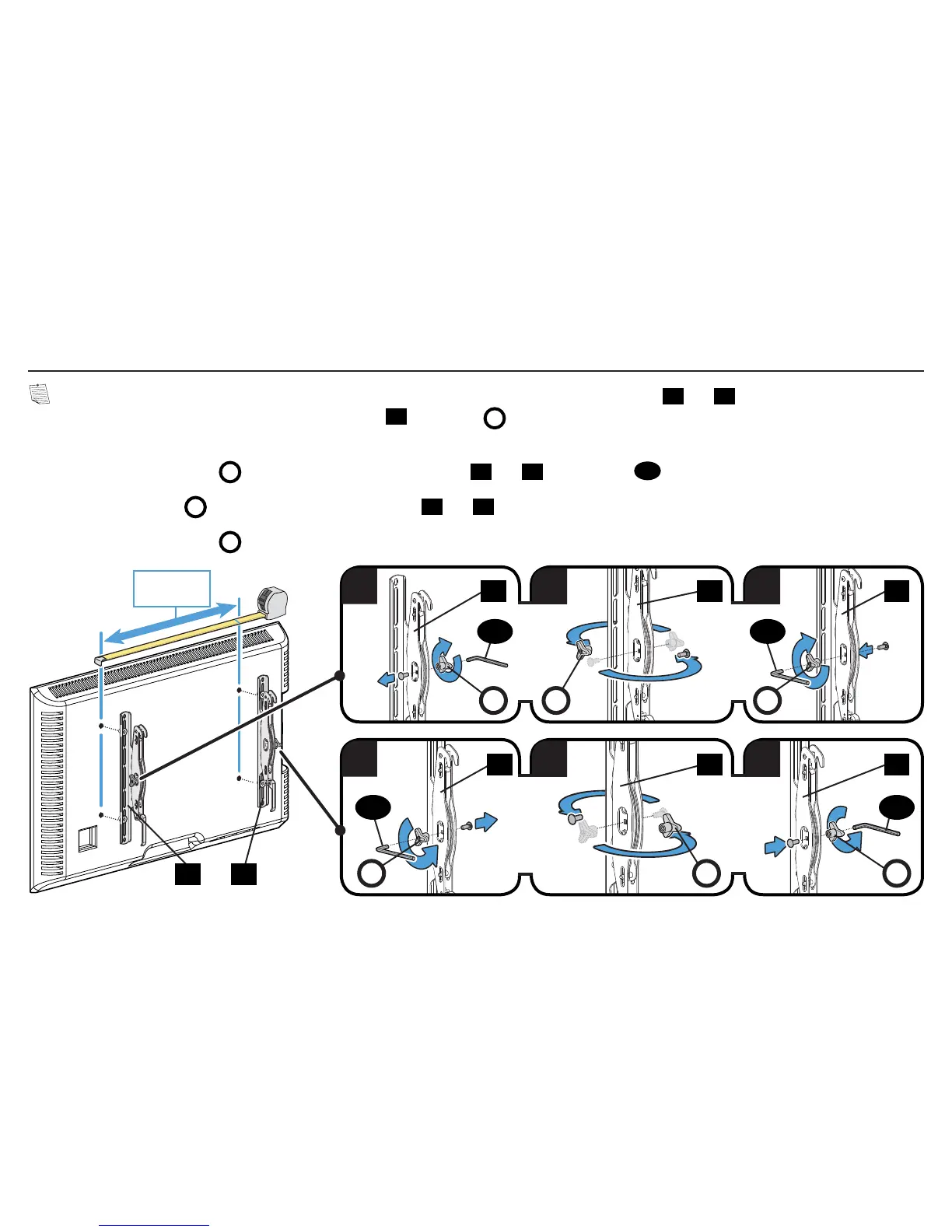 NOTE: For TV's with hole patterns wider than 600 mm (≈23 5/8 in.), the placement of TV brackets