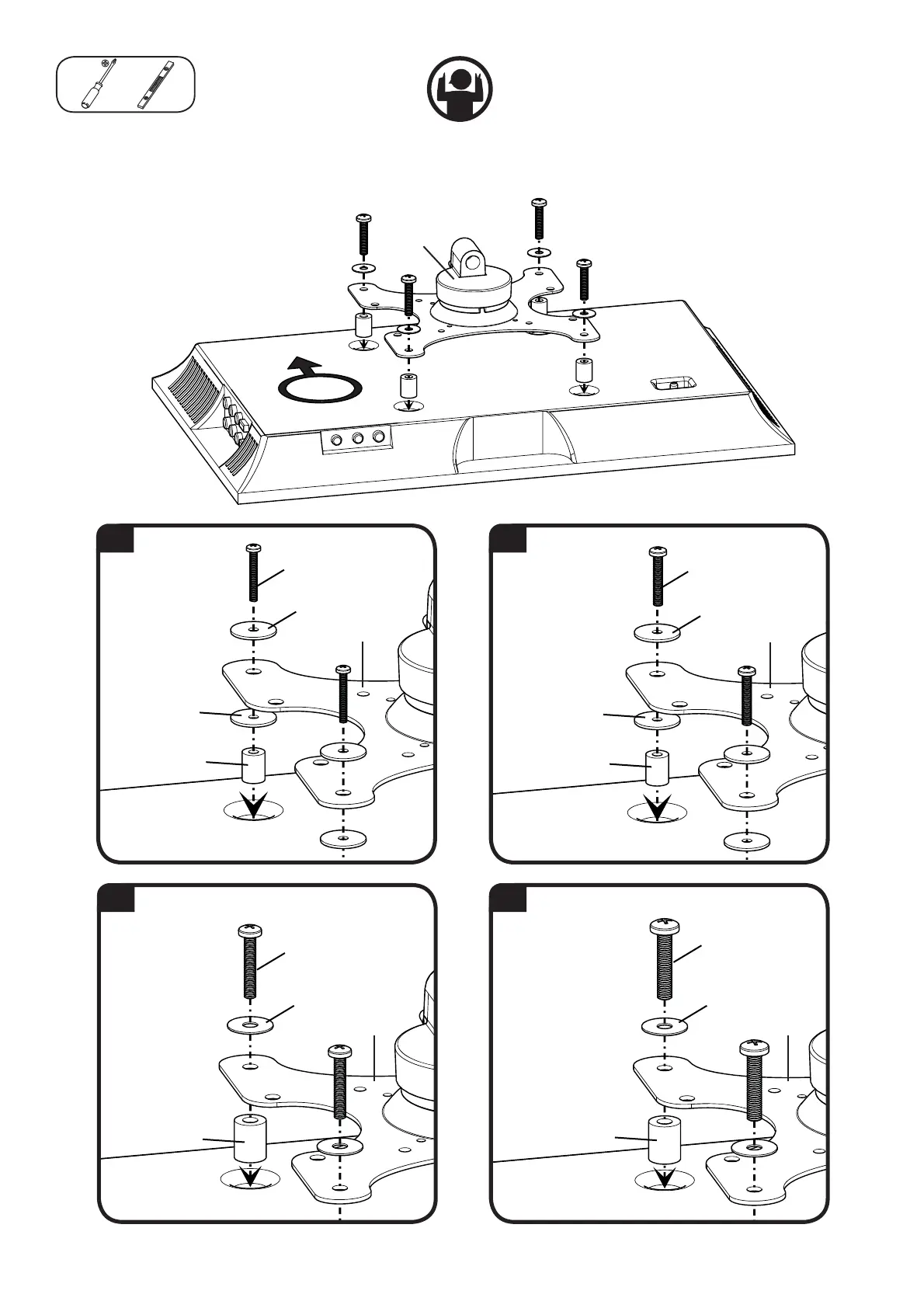 For TVs with an irregular/obstructed back. Ensure that the