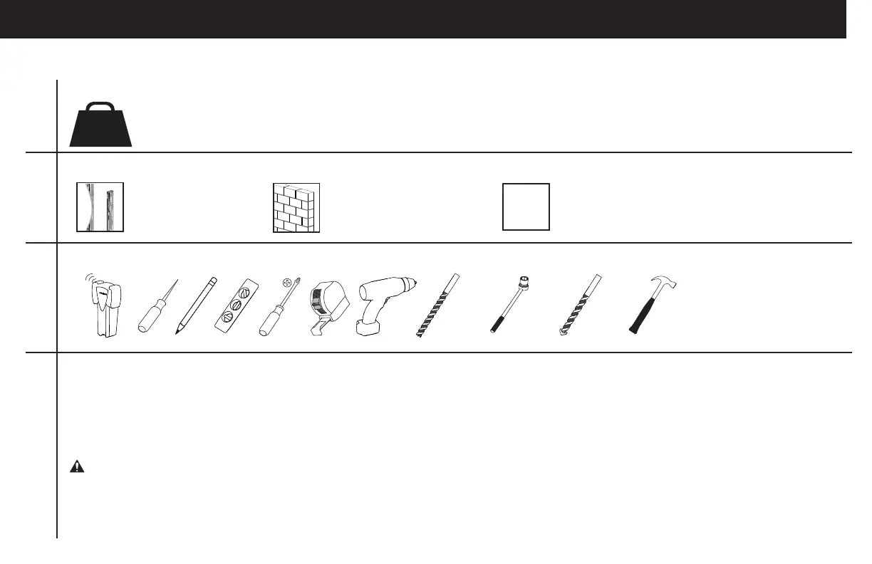 • The wall must be capable of supporting fi ve times the weight of the TV and mount combined