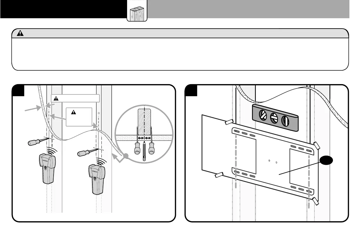 ● Minimum wood stud size: nominal 2 x 4 in. (51 x 102 mm) actual 1 ½ x 3 ½ in. (38 x 89 mm)