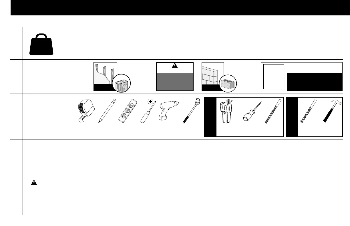 ● Le mur doit pouvoir supporter cinq fois le poids total du téléviseur et du support.