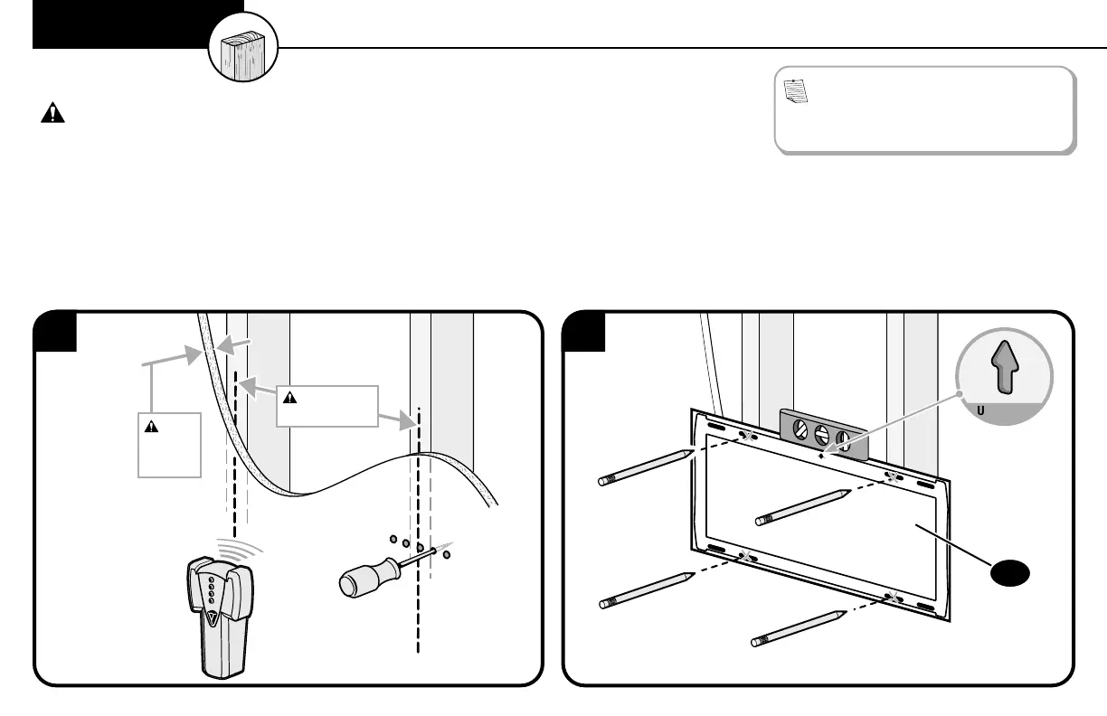 ● Stud centers must be verified – not all walls have conventional 16 in. (406 mm) stud spacing