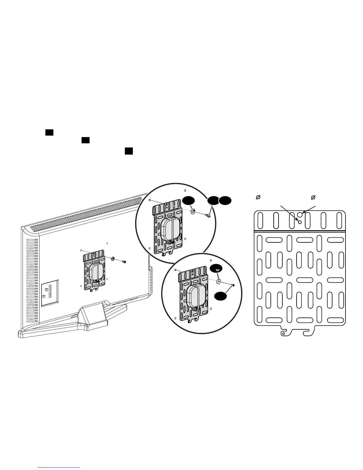 to the back of the TV directly into one of the TV’s VESA mounting holes using a mounting screw and washer in one
