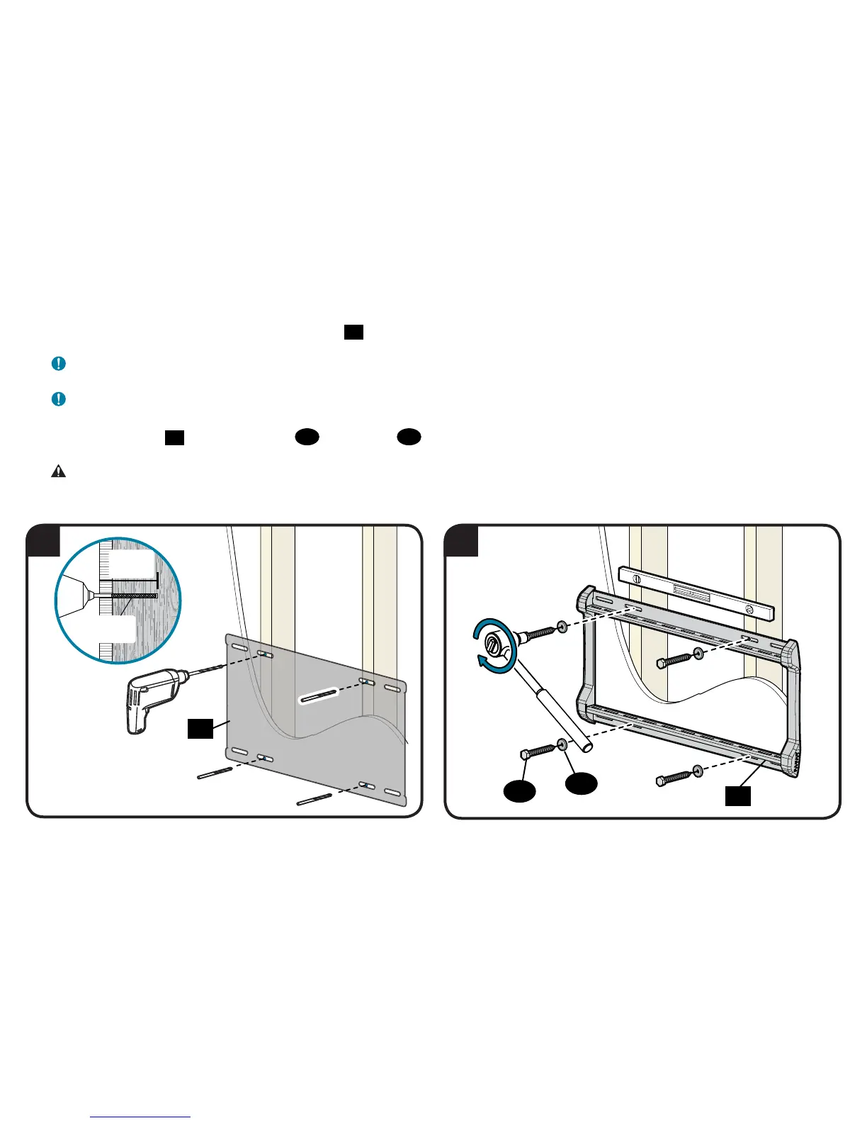 CAUTION: Improper use could reduce the holding power of the lag bolt. DO NOT over-tighten the lag bolts.